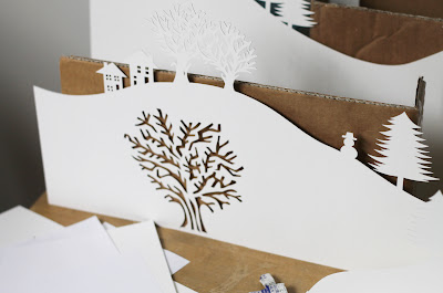 really needs tidying as there is even more paper on the desk and floor than normal. All good though, as I have been merrily scalpelling away. I'm excitedly waiting for a magazine to come out with my papercut winter wonderland inside, just about keeping up with card and poster orders and also working on a range of design projects.